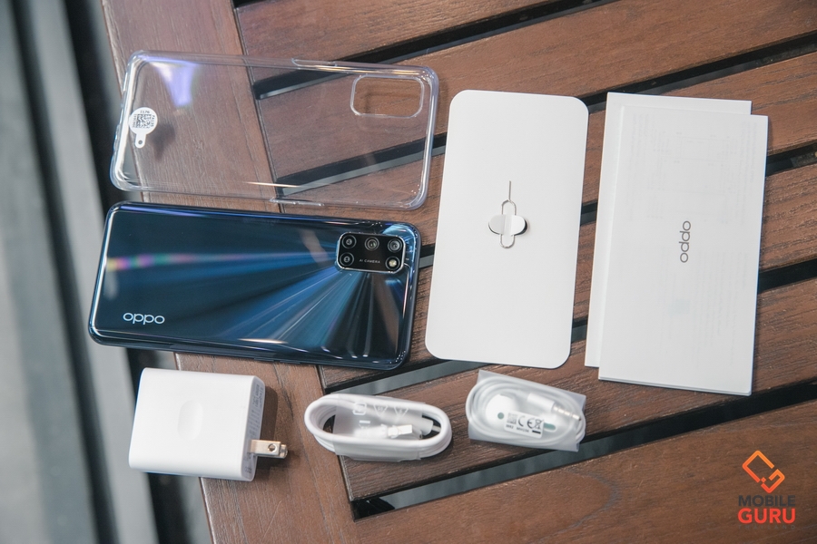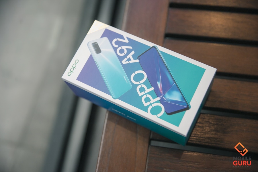 OPPO A92 กล่องสวยมากครับ เป็นดีไซน์ล่าสุดของ OPPO A series ในปีนี้ ดูโฉบเฉี่ยว และทันสมัย ภายในกล่องจะมี มีตัวเครื่อง, อะแดปเตอร์ พร้อมสาย USB Type-C, หูฟังแบบ Earbud, เคสใส, เข็มจิ้มซิม และคู่มือ