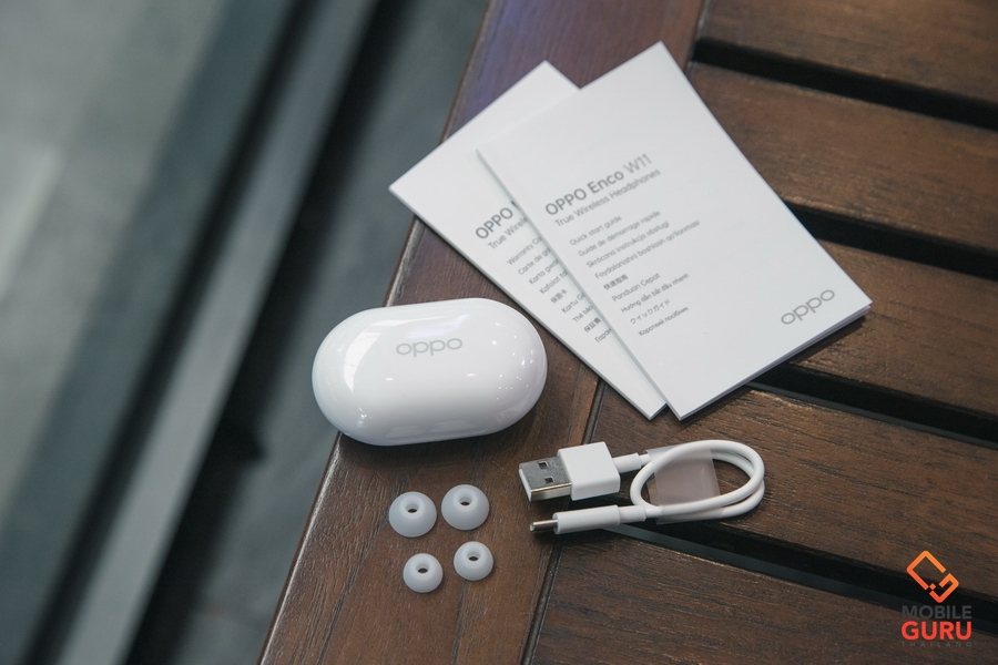 นอกจาก OPPO A92 แล้วทางออปโป้ยังเปิดตัวหูฟังไร้สายรุ่นใหม่ OPPO Enco W11 เข้ามาวางจำหน่ายในประเทศไทยพร้อมๆกันด้วย หูฟังรุ่นนี้จะมาในรูปแบบ True Wireless มีดีไซน์แบบเม็ดถัว สวยงาม และน้ำหนักเบา โดยส่วนตัวผมชอบดีไซน์ลักษณะนี้มากครับ ในกล่องจะมีเคสชาร์จ, สาย USB Type-C, จุกซิลิโคนหูฟังมาให้อีก 2 ขนาด