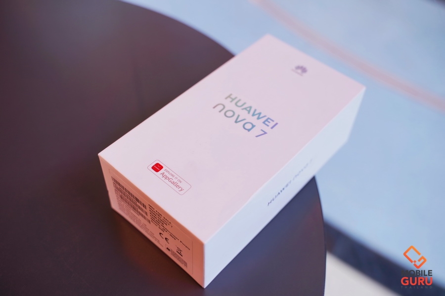 Huawei nova 7 อุปกรณ์ในกล่องจะมี ตัวเครื่อง, อะแดปเตอร์ พร้อมสาย USB Type-C, หูฟังแบบ Earbud, ตัวแปลง USB Type-C to 3.5 มม., เคสใส, (เข็มจิ้มซิม และคู่มือ จะมีในชุดวางจำหน่าย) มีดีไซน์ฝาหลังที่แตกต่างจากสมาร์ทโฟนทั่วไปในท้องตลาด มาพร้อมโลโก้ nova แบบใหม่ ที่สะท้อนให้เห้นถึงความเป็นตัวของตัวเอง และกล้าฉีกความเป็นไปได้อย่างสร้างสรรค์ สำหรับในรุ่นนี้ ทั้ง 3 สี ที่เป็นตัวเลือก ล้วนมีดีไซน์ที่แตกต่างกันอย่างสิ้นเชิงครับ สำหรับสีม่วง ที่ได้รับมารีวิว จะมีลวดลายเหมือนกับ