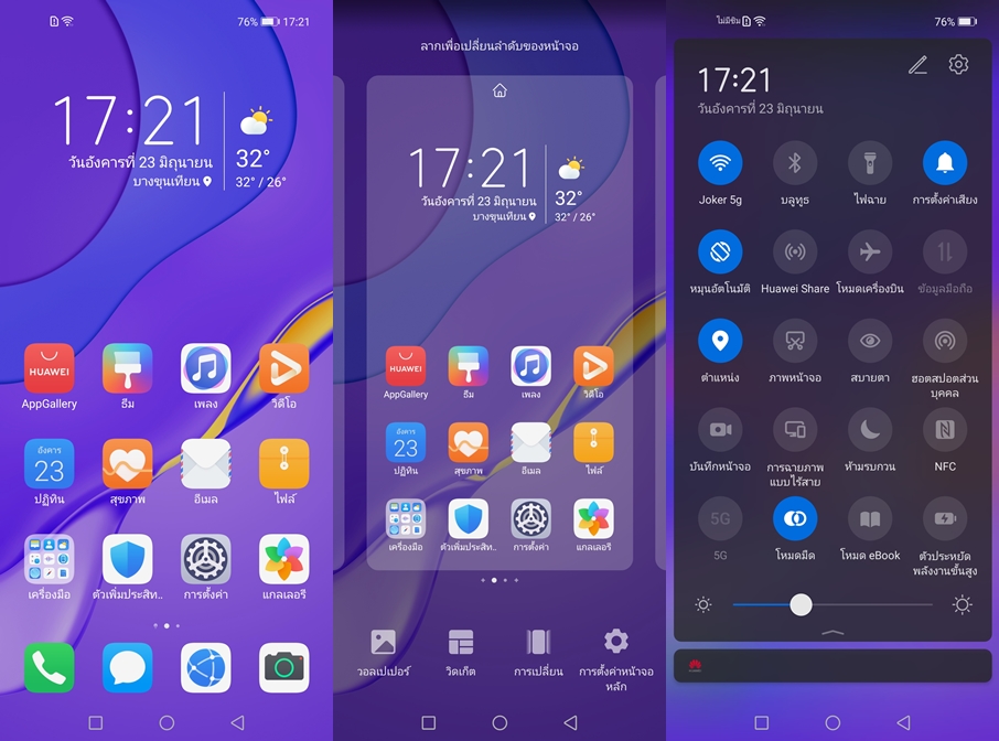 - ทำงานบน Android 10 (ใช้บริการ HMS) ครอบทับด้วย EMUI 10
