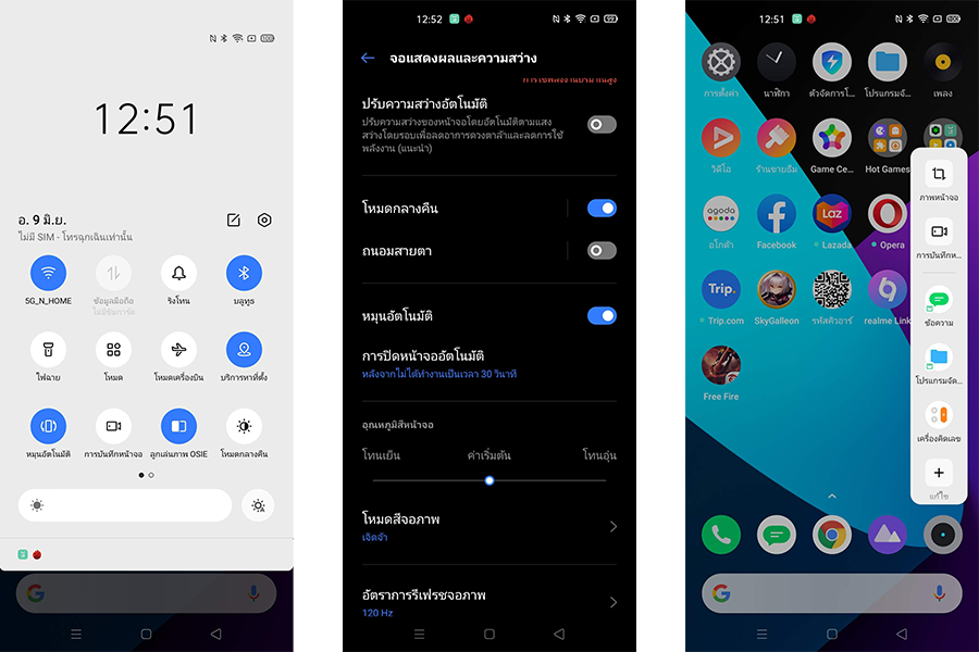 นอกจากนี้ตัวหน้าจอยังรองรับการแสดงผลอัตรา Refresh Rate ได้สูงสุดที่ 120Hz ซึ่งเราสามารถเลือกปรับค่าแบบแมนนวลได้เองระหว่าง 60Hz กับ 120Hz นอกนั้นจะเป็นการเปิดให้ระบบปรับให้อัตโนมัติตามการใช้งาน และยังไม่พอ! ทาง realme ยังใส่ซอฟต์แวร์เร่งสีของภาพ OSIE มาให้ด้วย ซึ่งตัวซอฟต์แวร์จะช่วยเร่งสีสันของภาพให้จัดจ้านขึ้นจากปกติ ทำให้ได้อรรถรสเวลารับชมคอนเทนท์ต่างๆ ได้ดีขึ้น โดยเราสามารถเข้าไปปรับเลือกเปิด-ปิดการใช้งานกับแอปพลิเคชั่นต่างๆ ได้ตามใจชอบเลย