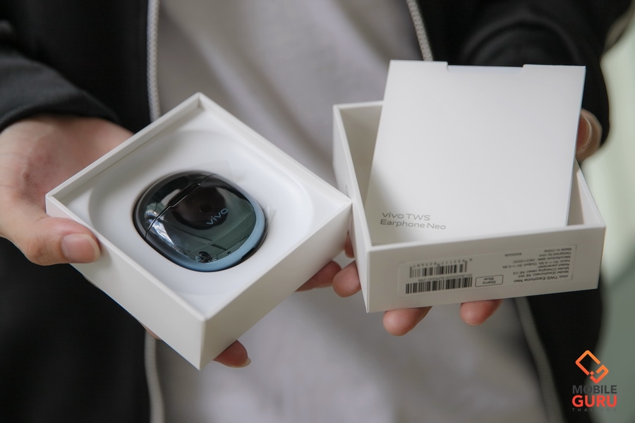 กล่องของ Vivo TWS NEO ดูดีมากครับ ในกล่องจะมีคู่มือ และสาย USB Type-C วัสดุเป็นพลาสติกคุณภาพสูง ให้ความรู้สึกพรีเมี่ยม น้ำหนักเบาเพียง 45.7 กรัม เมื่อรวมเคส และน้ำหนักหูฟังมีน้ำหนักเพียงแค่ 4.7 กรัม เท่านั้นเอง เวลาสวมใส่จึงเบาสบายมากๆ และสวมใส่ง่ายไม่เจ็บหู เป็นรูปทรงหูฟังแบบ Half In-Ear