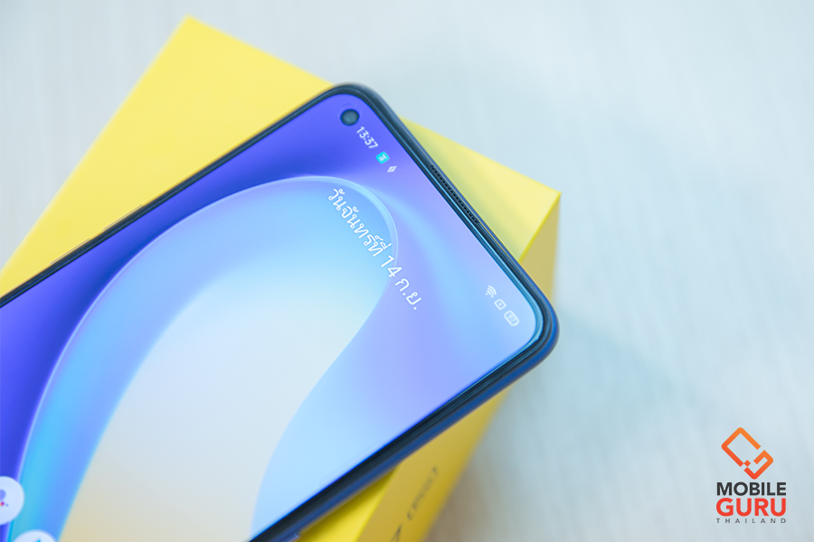 ด้านหน้าตัวเครื่อง มีหน้าจอแสดงผล AMOLED ขนาด 6.4 นิ้ว ความละเอียดระดับ Full HD+ มีอัตราส่วนหน้าจอแบบ 20:9 และมีค่าความสว่างอยู่ที่ 600 nits ซึ่งทาง realme เคลมว่าหน้าจอแสดงผลตัวนี้ได้ผ่านการรับรองมาตรฐานจาก TUV Rheinland องค์กรจากเยอรมันด้วย การันตีถึงคุณภาพได้เลย