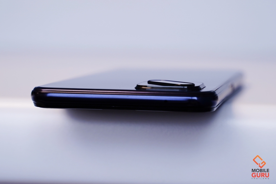 ด้านหลังดูเรียบสวย ฝาหลังก็มีความโค้ง 2.5D เคลือบผิวด้วยเทคนิคไล่เฉดสีดูสวยงาม สำหรับเครื่องที่ได้รับมารีวิวจะเป็นสีดำ Ink Black แต่จะดูไม่เป็นสีดำเลยครับ จะออกโทนสีม่วงเข้มอมน้ำเงินไล่เฉดไปถึงสีเทา ดูสวยงามและพรีเมี่ยมมากๆ กล้องหลังมาพร้อมการจัดวางเลนส์ที่ดูโดดเด่นแปลกตา ให้ความรู้สึกถึงความลึกตื้นมีมิติ ประกอบด้วยกล้อง 4 เลนส์ 48MP + 8MP + 2MP + 2MP และไฟแฟลช LED อยู่ตรงกลาง