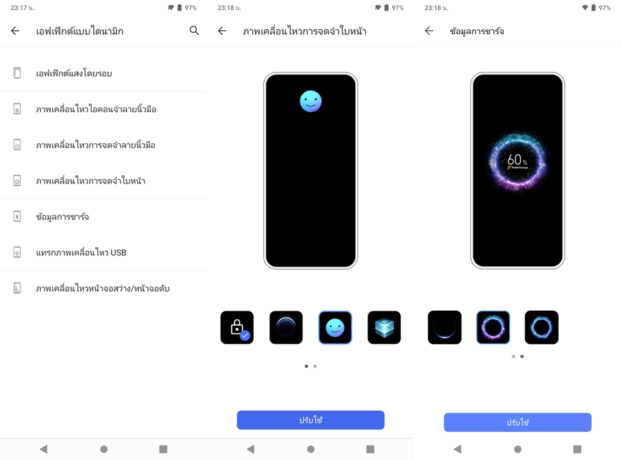 นอกจากนี้ ยังสามารถปรับแต่ง Effect ต่างๆ ในเครื่องได้อย่างมากมาย เรียกได้ว่าปรับได้ทุกรายละเอียด รองรับฟีเจอร์ Clone App สามารถใช้งานแอปพลิเคชั่นที่รองรับ ได้พร้อมกัน 2 ID พร้อมรองรับ Gesture อำนวยความสะดวกในการใช้งาน และฟีเจอร์ Multi Windows เปิดใช้งานแอปพลิเคชั่นพร้อมกัน 2 หน้าจอ สมารถสลับหน้าจอแอป ทำงานพร้อมกันได้อย่าลื่นไหล