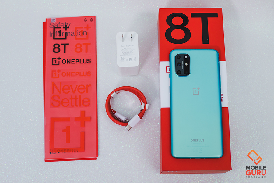 OnePlus 8T 5G คู่มือการใช้งาน สติ๊กเกอร์ OnePlus อแดปเตอร์ชาร์จไฟ หัวต่อพอร์ต USB-C สายชาร์จ USB-C to USB-C งานออกแบบ (Design)