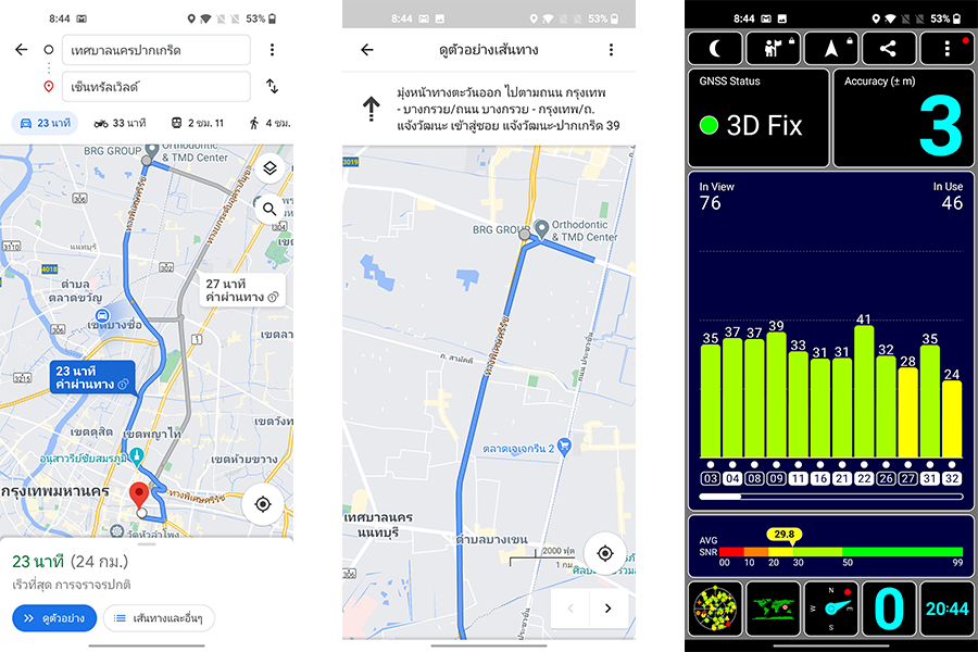 การใช้นำทางด้วยแอปพลิเคชั่นนำทางอย่าง Google Maps บน OnePlus 8T 5G เป็นอะไรที่รวดเร็วมากครับ สามารถจับสัญญาณและเริ่มทางได้ไวมากๆ ถึงแม้สภาพอากาศจะปิดก็ตาม แต่ในทางกลับกันถ้าหากเข้าไปใช้ในตัวอาคารหรือลานจอดรถชั้นใต้ดิน จะมีอาการรอจับสัญญาณให้เห็นอยู่เหมือนกัน แต่ถ้าใครจะใช้นำทางเดินทางต่างจังหวัดอันนี้หายห่วงใช้นำทางได้ดีทีเดียว ซึ่งตอนที่ผมใช้นำทางยังไม่เจออาการตัวนำทางตรงร่องข้างทางหรือไปโผล่อีกฝากของถนนนะครับ