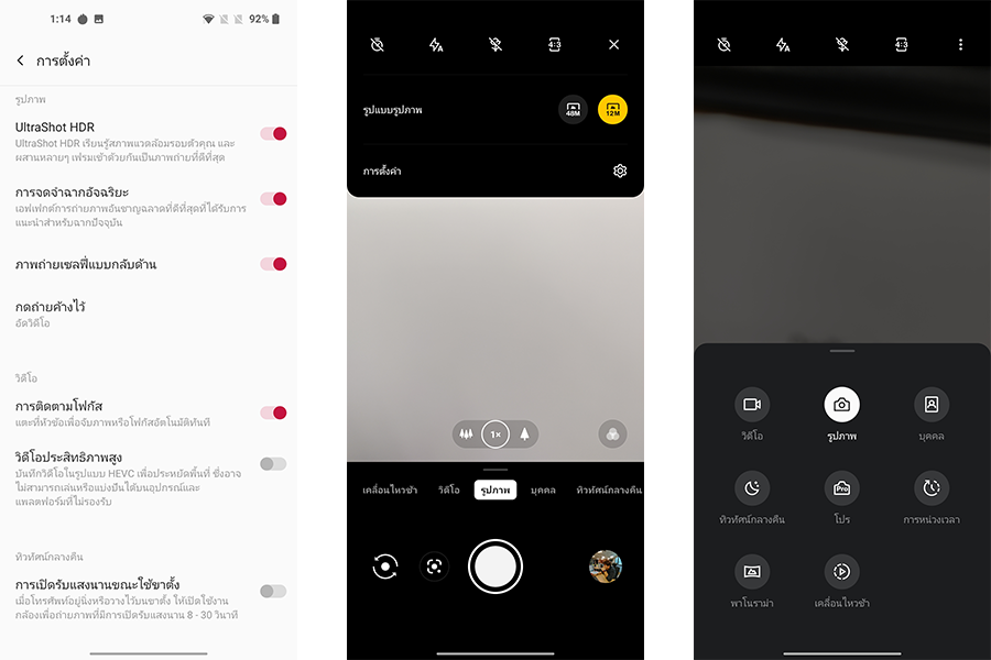 หน้าเมนูกล้องถ่ายรูปและคุณสมบัติการถ่ายภาพนิ่ง (Photo)