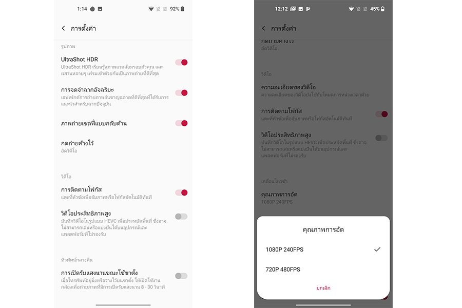 คุณสมบัติการถ่ายภาพวิดีโอ (VDO)