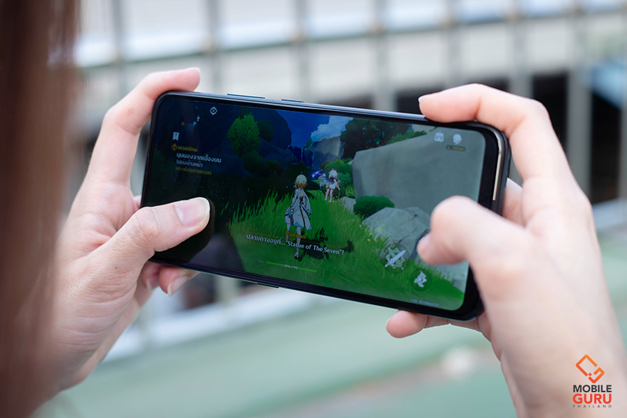 เริ่มกันที่ด้านของความบันเทิงอย่างการเล่นเกม ดูหนัง ฟังเพลง เรียกว่าตอบโจทย์การใช้งานได้ดีเลยทีเดียว ด้วยหน้าจอขนาดใหญ่ 6.39 นิ้ว ไม่มีติ่งบดบังสายตา และการแสดงผลบนความละเอียดระดับ 720P ก็สามารถเสพคอนเทนต์ต่าง ๆ ได้แบบเต็มอิ่มแล้ว ส่วนทางด้านของการเล่นเกม ก็ถือว่าเอาใจคอเกมอยู่ประมาณหนึ่งเลย เพราะจากการทดสอบด้วยเกมกราฟิกสูงจัด ๆ อย่าง Genshin Impact อันดับแรกคือตัวเครื่องรองรับนะคะ สามารถเล่นได้ และสามารถตัั้งค่าการแสดงผลกราฟิกในระดับสูงมากได้ แต่ภาพจะกระตุกและเครื่องร้อนค่อนข้างไว แนะนำให้เซ็ตการตั้งค่าไว้ที่ระดับมาตรฐานค่ะ พอผ่านเกมนี้ได้แล้ว เกมอื่นอื่น ๆ ก็ต้องบอกว่า... เล่นได้ สบายหายห่วง
