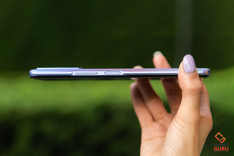 ด้านข้างขวาของตัวเครื่องจะมีปุ่มกดปรับระดับเสียงเพิ่ม-ลด (Volume) และปุ่มกดเปิด-ปิดตัวเครื่อง (Power) ซึ่งใช้เป็นตำแหน่งแตะสัมผัสสำหรับสแกนลายนิ้วมือในตัวด้วย