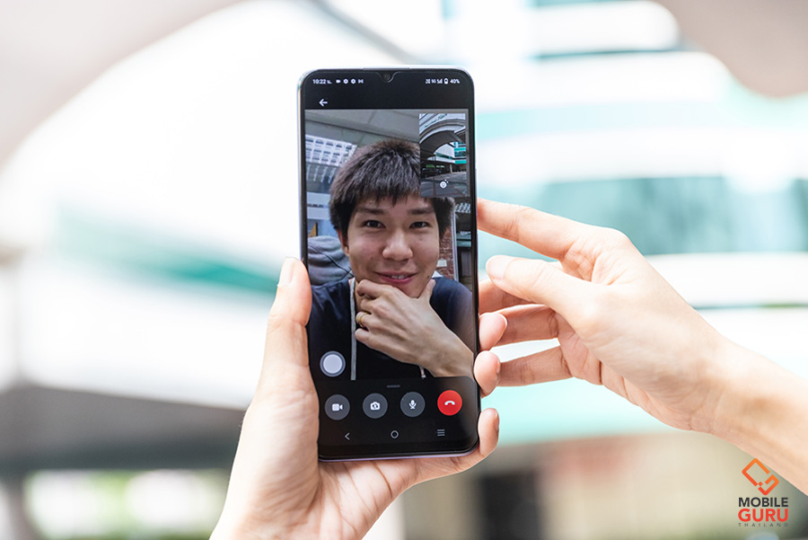 ขยับขึ้นไปตรงรอยหยดน้ำด้านบนจะเป็นตำแหน่งของกล้องหน้า ซึ่งรอบนี้ติดตั้งกล้องหน้าแบบกล้องเดี่ยวมีความละเอียดอยู่ 16MP (F2.0)
