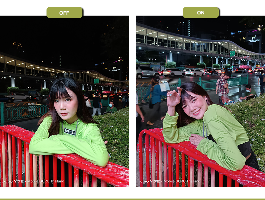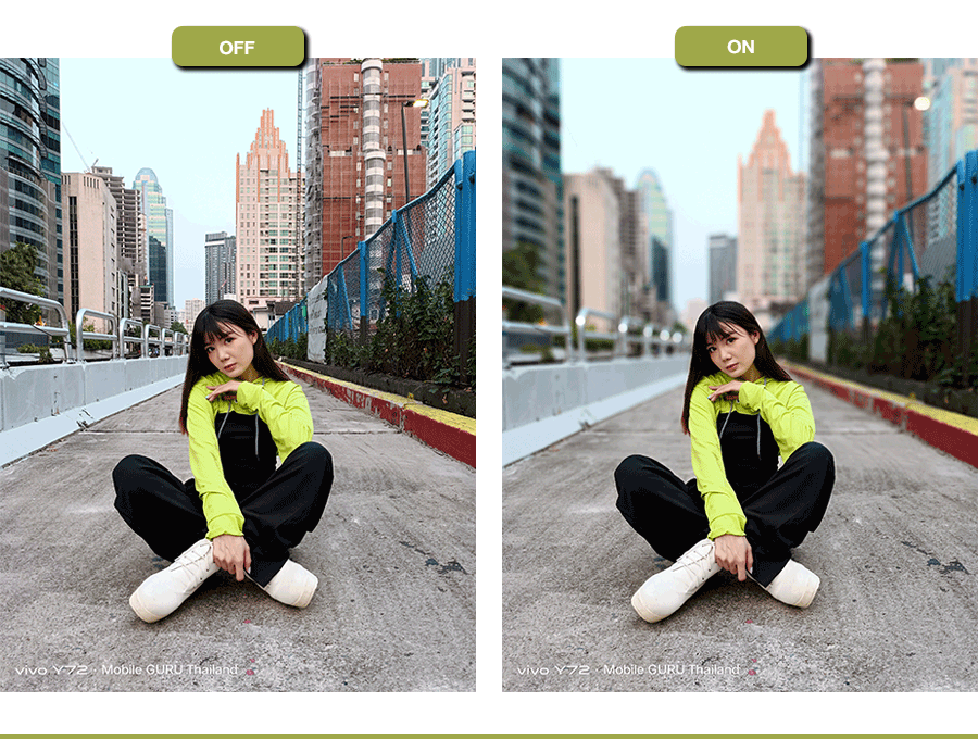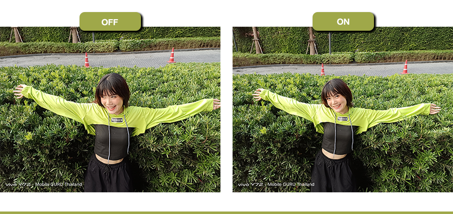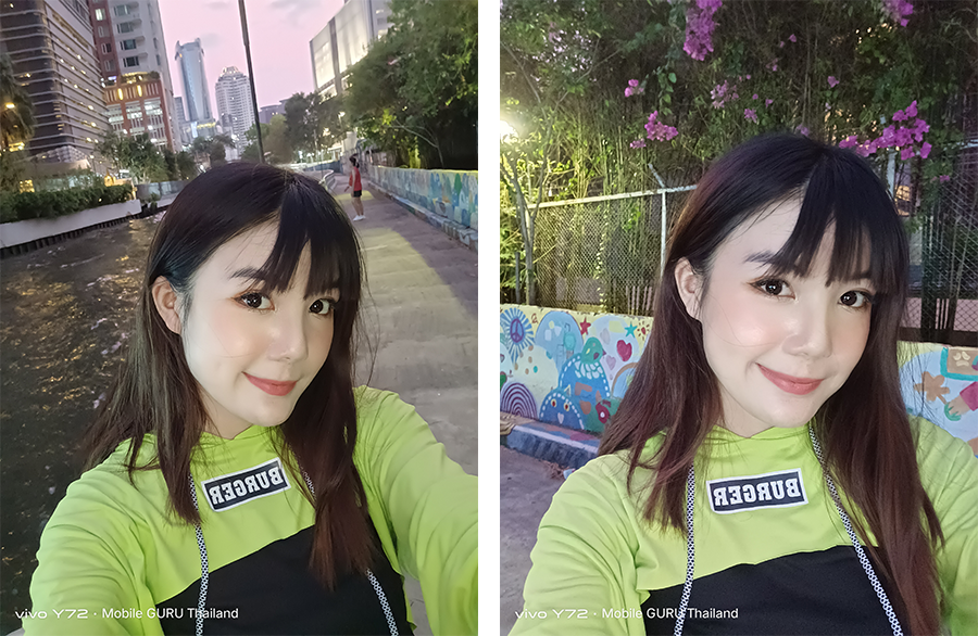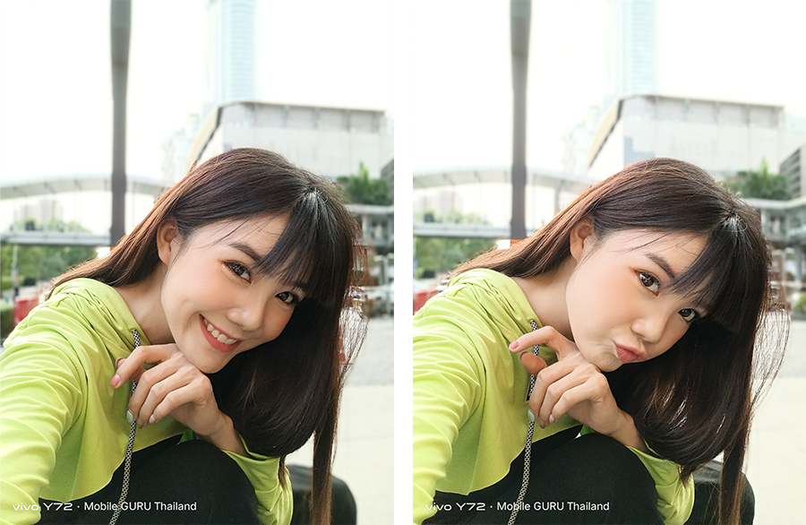 ส่วนจุดเด่นของกล้องตัวนี้นอกจากเรื่องเครื่องมือในการถ่ายภาพที่วีโว่ใส่เข้ามาให้เยอะแล้ว ส่วนตัวขอยกให้การถ่ายภาพแนว Portrait ที่ตัวกล้องของ Vivo Y72 5G ทำออกมาได้ดีมาก ๆ ก็ตามสไตล์วีโว่เขาแหละ ถึงแม้จะยังมีรายละเอียดบางจุดที่ยังต้องปรับปรุงแก้ไขอยู่บ้างในเรื่องของการละลายขอบนางแบบ และการคุมแสงที่บางครั้งก็โอเวอร์ไปหน่อย แต่ถ้าเทียบกับคุณภาพในภาพรวมที่ถ่ายได้หลังกล้องถือว่า เป็นกล้องที่ดีที่สุด 1 ใน 3 รุ่นของสมาร์ตโฟน 5G ต่ำหมื่น ณ เวลานี้เลยก็ว่าได้นะ