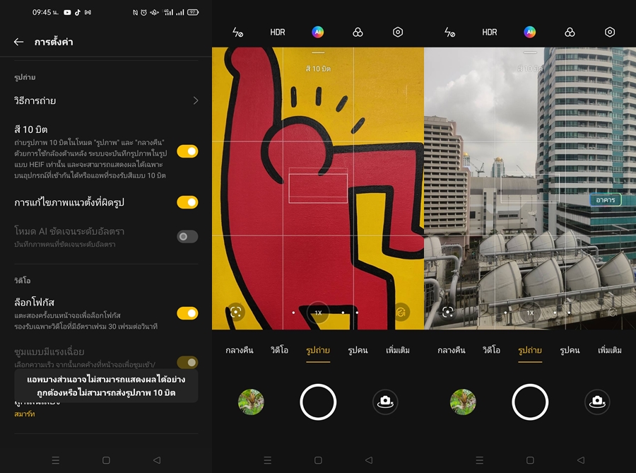 สำหรับการบันทึกภาพ 10-bit Colors จะบันทึกเป็นสกุล HEIF เท่านั้น ซึ่งทำให้เวลาจะเปิดใช้งานต้องใช้งานผ่านโปรแกรมที่รองรับสกุลนี้ รวมไปถึงต้องใช้หน้าจอที่รองรับ 10-bit Colors ด้วยนะครับ นอกจากภาพนิ่งแล้ว OPPO Find X3 Pro 5G ยังรองรับ CinematicMode โหมดการถ่ายวิดีโอ 1 พันล้านสี สามารถปรับแต่งด้วย LOG, BT2020 และปรับทุกอย่างได้อย่างละเอียดด้วยฟีเจอร์ Manual รวมทั้งรองรับการถ่ายภาพเป็นไฟล์ RAW+ ซึ่งมีการใช้ฟีเจอร์ HDR เข้ามาช่วยให้มีคุณภาพมากขึ้น สามารถปรับแต่งต่อได้มากกว่าเดิม
