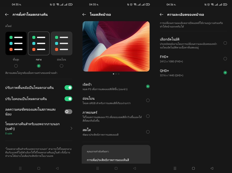 OPPO Find X3 Pro 5G จัดเต็มหน้าจอ LTPO AMOLED ขอบโค้ง ขนาด 6.7 นิ้ว ความละเอียด QHD+ 3,216 x 1,440 pixels, ความสว่างสูงสุด 1,300 nit, รองรับ Refresh Rate 120Hz สามารถปรับค่า Refresh Rate ต่ำสุดที่ 5Hz, Touch Sampling Rate 240Hz, ได้คะแนนหน้าจอจาก DisplayMate ระดับ A+ เป็นรุ่นแรกเลยนะครับ ที่ใช้หน้าจอตัวนี้ สัมผัสแรกผมประทับใจเลยนะ เป็นหน้าจอที่สวยงามมากๆ รองรับ ColourVision Enhancement ด้วยนะครับ ช่วยให้หน้าจอแสดงผลสีสันได้เที่ยงตรงมากยิ่งขึ้น สำหรับกล้องหน้ามีความละเอียด 32MP F2.4 26 มม.