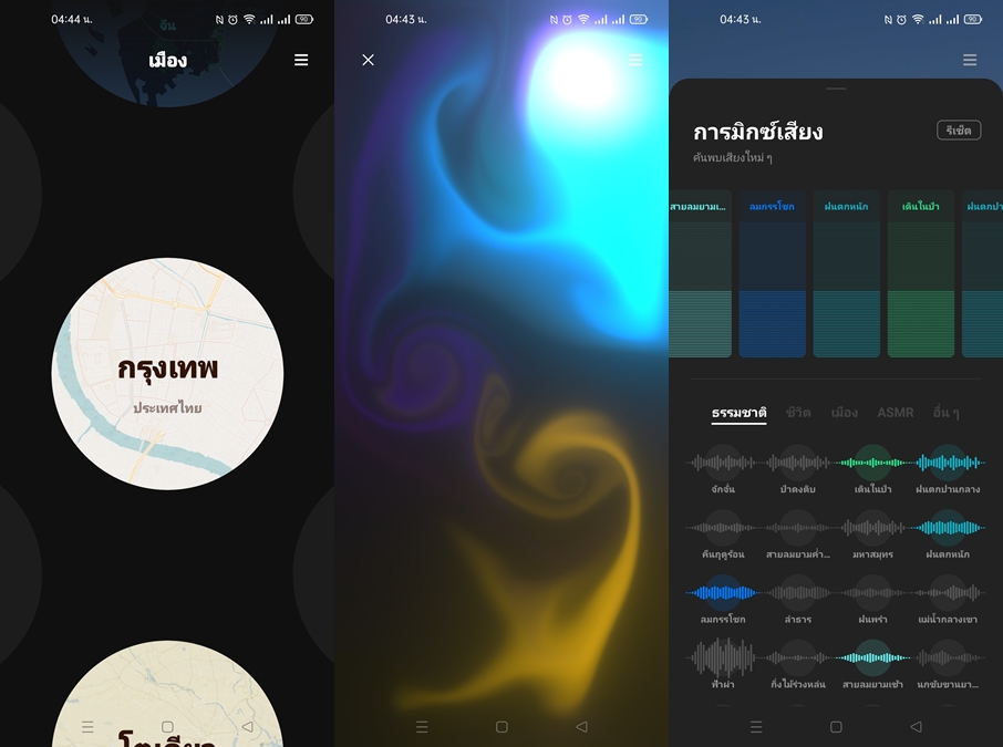 OPPO Relax 2.0 แสดงภาพและเสียงเพลง รวมไปถึงเสียงรบกวน ที่ทำให้เรารู้สึกผ่อนคลาย ช่วยให้เรานอนหลับง่ายยิ่งขึ้น หรือเปิดใช้งานตอนเราออกกำลังการอย่างการเล่นโยคะ หรือตอนทำสมาธิ พัฒนาขึ้นจากเวอร์ชั่นเดิม สามารถเลือกเสียงบรรยากาศจากสถานที่จริงในหลายๆประเทศ หนึ่งในนั้นมีประเทศไทยด้วยนะครับ