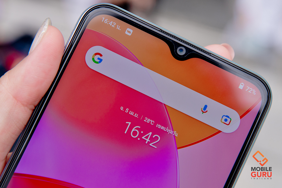 พลิกกลับมาที่ด้านหน้าตัวเครื่องจะพบกับหน้าจอแสดงผล IPS LCD Halo FullView Display ขนาด 6.51 นิ้ว ความละเอียด 1600x720 พิกเซล (HD+) มีอัตราส่วนการแสดงผล 20 : 9 ซึ่งตัวหน้าจอจะมีซอฟต์แวร์ Eyes Protect สำหรับลดการปล่อยแสงสีฟ้าของหน้าจอใส่มาให้ด้วย