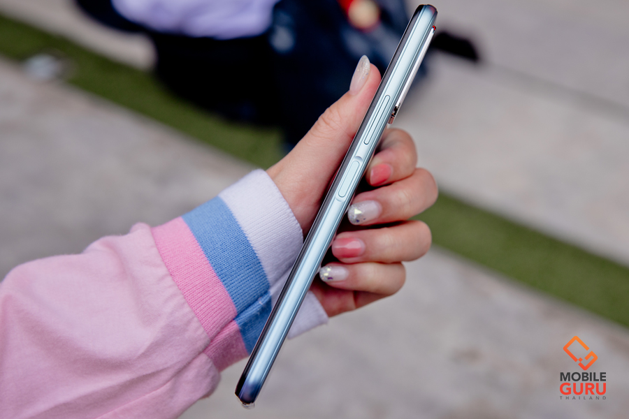 มากันที่ด้านขวาของตัวเครื่องจะเป็นตำแหน่งของปุ่มกดปรับระดับเสียงเพิ่ม-ลด (Volume) และปุ่มกดเปิด-ปิดตัวเครื่อง (Power) ซึ่งเป็นแป้นสัมผัสสำหรับใช้สแกนลายนิ้วมือในตัวด้วย