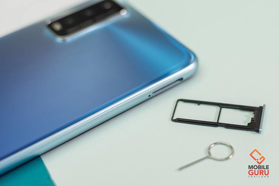 ด้านซ้ายตัวเครื่องเป็นตำแหน่งของถาดซิมการ์ด ซึ่งตัวเครื่องจะรองรับการใช้งานซิมการ์ดแบบ 2+1 ทำให้สามารถใช้งานซิมการ์ดหลักและซิมรองได้พร้อมกับการใช้งาน MicroSD Card (รองรับสูงสุด 1TB)