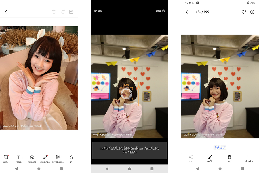 โหมด Bokeh เราสามารถปรับระดับการละลายพื้นหลังของภาพถ่ายใหม่ได้จากเมนู "Edit" ในหน้า Gallery