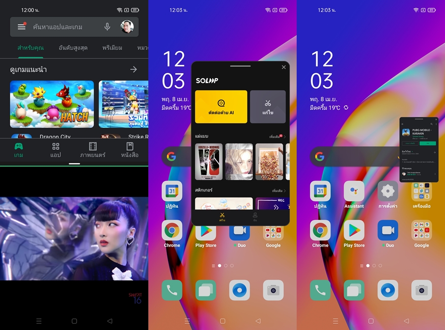 OPPO A94 มาพร้อมฟีเจอร์อำนวยความสะดวกในการเล่นเกมไม่ว่าจะเป็น Game Focus Mode ช่วยในการปิดการแจ้งเตือนที่รบกวนในขณะที่เรากำลังเล่นเกมและ Gaming Shortcut Mode จะมีการสำรองหน่วยความจำ สำหรับเกมที่เราเล่นบ่อยๆ ช่วยในการข้ามช่วงแนะนำเริ่มเกมโดยอัตโนมัติ ให้เราเข้าถึงการเล่นเกมได้รวดเร็วมากยิ่งขึ้น (ต้องเป็นเกมที่พัฒนาโดยใส่ฟีเจอร์นี้ของ OPPO ลงไปด้วย) แถมยังสามารถเล่นเกมไป ทำอย่างอื่นไปด้วยฟีเจอร์ FlexDrop หรือเรียกว่า Game Floating Window นอกจากเปิดใช้งานคู่กับแอปอื่นๆแล้ว ยังสามารถสลับเล่นเกม 2 เกมในเวลาเดียวกันได้อีกด้วย ผ่านฟีเจอร์นี้ และแน่นอนครับว่ารองรับ Bullet Screen Message ที่จะแสดงการแจ้งเตือนแบบ Pop-Up โปร่งใส ช่วยให้ไม่พลาดการแจ้งเตือน แต่ก็ไม่ทำลายอรรถรสในการเล่นเกม