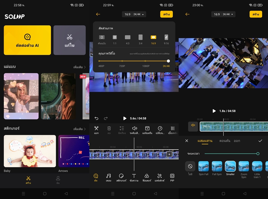 Soloop แอปพลิเคชั่นตัดต่อวิดีโอคุณภาพสูง สามารถตัดต่อเป็นคลิปสำเร็จรูปที่มาพร้อมเอฟเฟคแพรวพราว หรือจะตัดต่อด้วยตัวเองก็สามารถทำได้อย่างละเอียดไม่แพ้โปรแกรมบน PC เลยครับ สามารถใส่เพลงใส่เสียง และใส่ซับไตเติ้ลด้วยตัวเองได้อีกด้วย ใช้งานง่าย และคุณภาพออกมาดีมากๆเลยครับ สามารถบันทึกวิดีโอที่ตัดต่อเสร็จแล้วบนความละเอียดสูงสุดระดับ 4K เลยทีเดียว