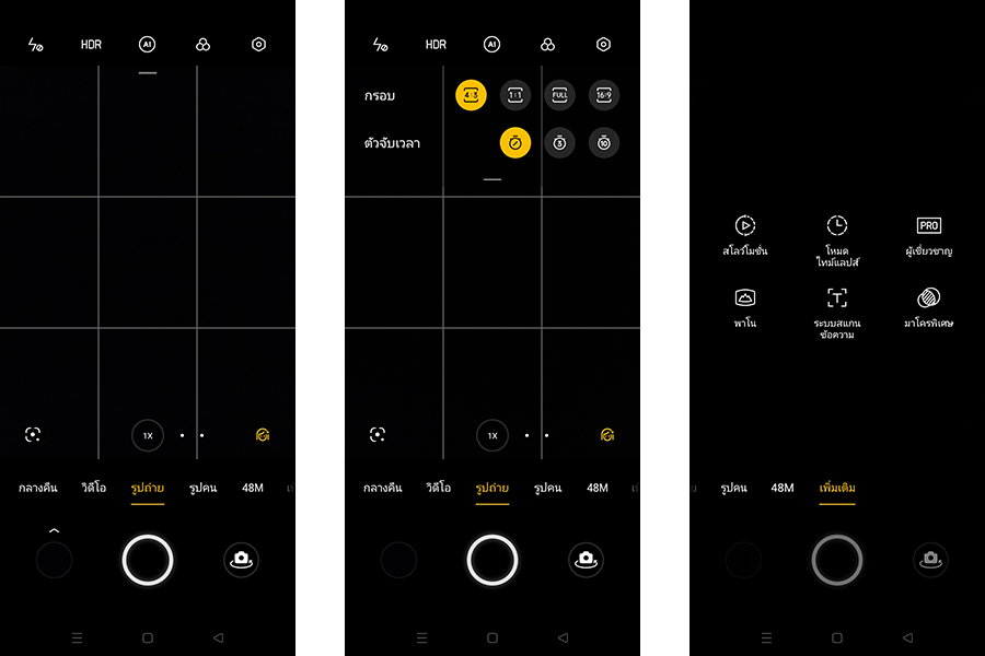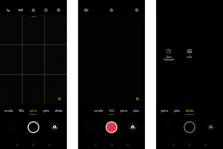 Super Nightscape, Panoramic View, Expert, Timelapse, โหมด Portrait, HDR, Ultra Macro, AI Scene Recognition, AI Beauty, Filters