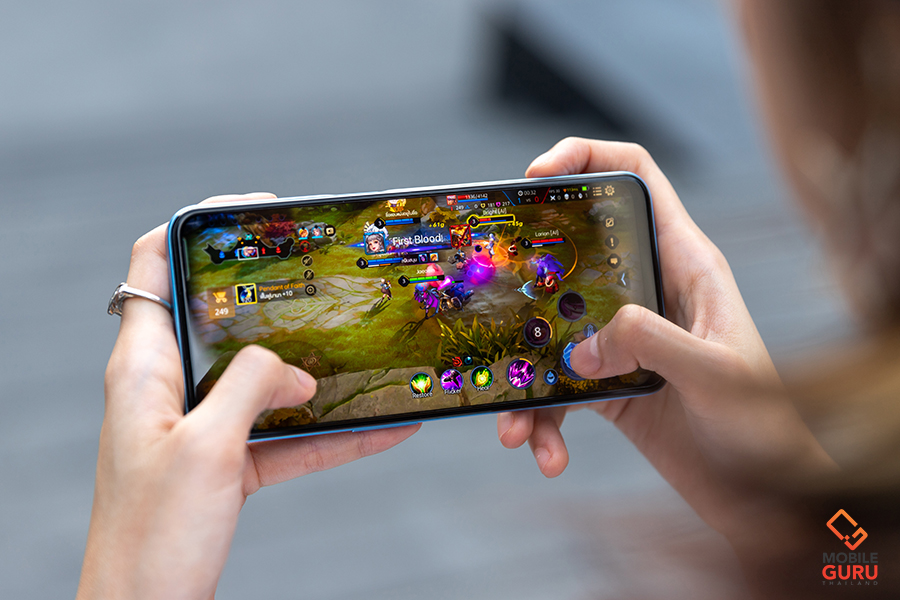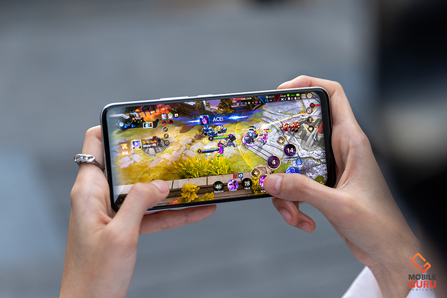 realme 8 เลือกใช้ชิปประมวลผล Helio G95 ซึ่งเป็นชิป Gaming Processor ที่ได้รับการออกแบบมาโดยเฉพาะเพื่อเพิ่มประสบการณ์การเล่นเกมบนสมาร์ทโฟนโดยเฉพาะ ดังนั้นผลลัพธ์ทางด้านเกมมิ่ง ก็ต้องบอกว่าอยู่ในระดับดีเลยค่ะ การประมวลผลทำงานขณะเล่นเกมทำได้ไหลลื่น จากการทดลองด้วยเกม RoV พบว่าสามารถคุมเฟรมเรทได้นิ่งมาก (วิ่งอยู่ที่ 59-61FPS) ภาพสวย ทัชติดมือ สามารถปรับค่าโหมด HD ระดับสูงมาก ปรับการแสดงผลระดับสูงมากได้ และเปิดโหมด High Frame Rate ได้ เครื่องไม่หน่วง ไม่กระตุกค่ะ นอกจากนี้ realme 8 ยังมาพร้อมกับ Copper Liquid Cooling System ระบบระบายความร้อนด้วยของเหลวทองแดงขั้นสูง ที่ประสิทธิภาพการทำความเย็นเพิ่มขึ้น 14.4% ทำให้ในขณะเล่นเกม สามารถระบายความร้อนสะสมที่เกิดขึ้นออกสู่ภายนอกได้ดีกว่าเดิม เล่นผ่านไปสักระยะก็ทำให้รู้สึกแค่อุ่นๆ เท่านั้น