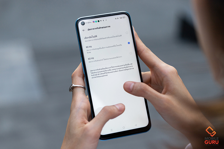 และอีกจุดหนึ่งที่ต่างกันคือ realme 8 5G จะมีในส่วนของการปรับอัตราการรีเฟรชจอภาพ ที่สามารถเลือกเป็นแบบ 90Hz, 60Hz ได้ หรือจะเลือกเป็นแบบอัตโนมัติก็ได้ค่ะ