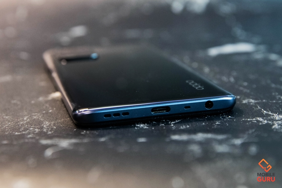ด้านบนเรียบๆ ด้านล่างมีพอร์ทหูฟัง 3.5 มม., ไมโครโฟน, USB Type-C 2.0 และลำโพง, ด้านซ้ายมีช่องใส่ซิม และปุ่มปรับระดับเสียง ส่วนด้านขวาจะเป็นปุ่ม Power ที่ทำหน้าที่เป็น Fingerprint เซนเซอร์สแกนลายนิ้วมือ