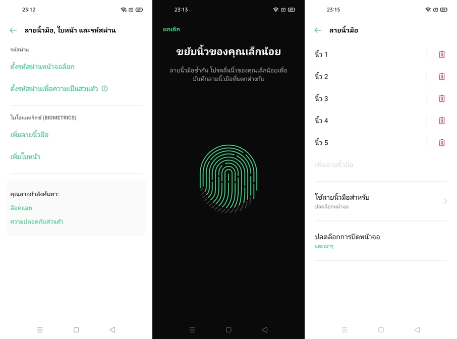 OPPO A54 มาพร้อม Fingerprint ที่ปุ่ม Power รองรับสุงสุด 5 ลายนิ้วมือ นอกจากนี้ยังรองรับ AI Face Access การปลดล็อคหน้าจอด้วยใบหน้า ความเร็วและความแม่นยำทำได้ดีมากครับ