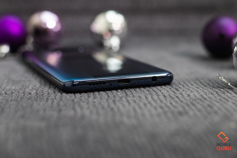 เลื่อนขึ้นไปด้านบนจะพบตัวอินฟาเรด (Infrared) สำหรับใช้รีโมทเครื่องใช้ไฟฟ้า, ไมโครโฟนตัดเสียงรบกวน และลำโพงสเตริโอ เลื่อนลงมาด้านล่างจะเจอพอร์ทหูฟัง 3.5 มม., พอร์ท USB Type-C 2.0, ไมโครโฟนสนทนา และลำโพงสเตริโอหลัก