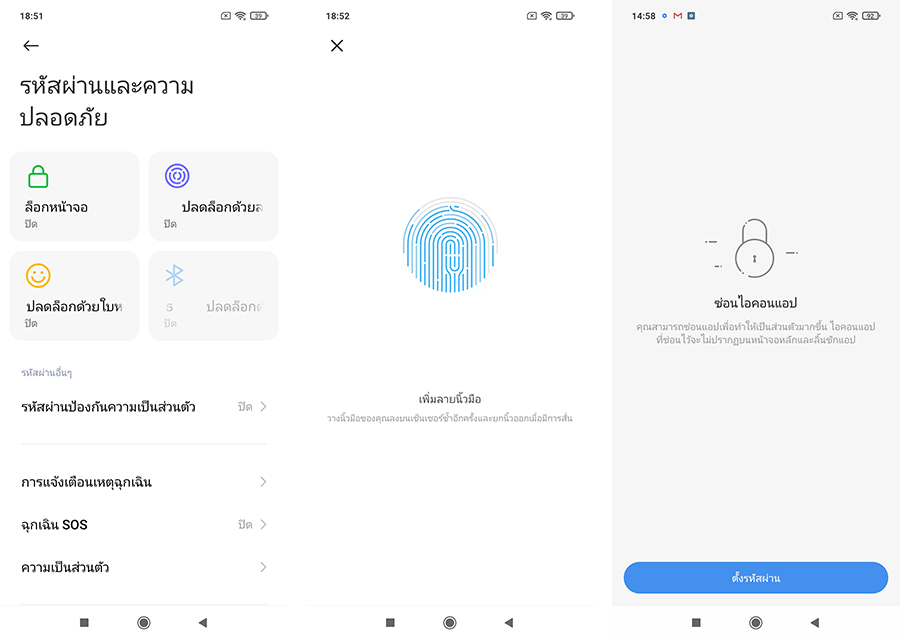 สำหรับระบบรักษาความปลอด POCO X3 Pro รองรับทั้งการปลดล็อกด้วยใบหน้า (Face ID) และ สแกนลายนิ้วมือ (Fingerprint) บนปุ่ม Power ที่อยู่ด้านข้างและรองรับสูงสุด 5 ลายนิ้วมือ ซึ่งต้องชื่นชมว่าทำงานได้รวดเร็วและแม่นยำมาก ๆ ค่ะ เพียงแค่แตะหนึ่งนิดเดียวก็สามารถปลดล็อกได้ทันที นอกจากนี้ยังมีฟีเจอร์ซ่อนไอคอนแอปฯ ให้สามารถซ่อนแอปฯเพื่อความเป็นส่วนตัว โดยไอคอนแอปฯที่ซ่อนไว้จะไม่ปรากฎบนหน้าจอหลักและลิ้นชักแอปฯ โดยเปิดใช้งานได้ด้วยการไปที่หน้าลิ้นชักแอปพลิเคชันและเลื่อนไปทางขวาสองครั้งค่ะ