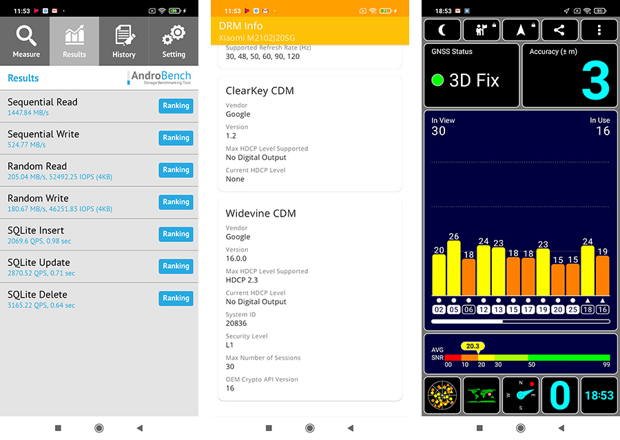 - ทดสอบด้วยแอปพลิเคชัน AndroBench ทำความเร็ว Storage ในการอ่านอยู่ที่ 1434.49 MB/s และการเขียน 528.72 MB/s (UFS 2.1) ทำความเร็ว RAM ในการอ่านอยู่ที่ 250.04 MB/s และการเขียน 180.67 MB/s (LPDDR4X)