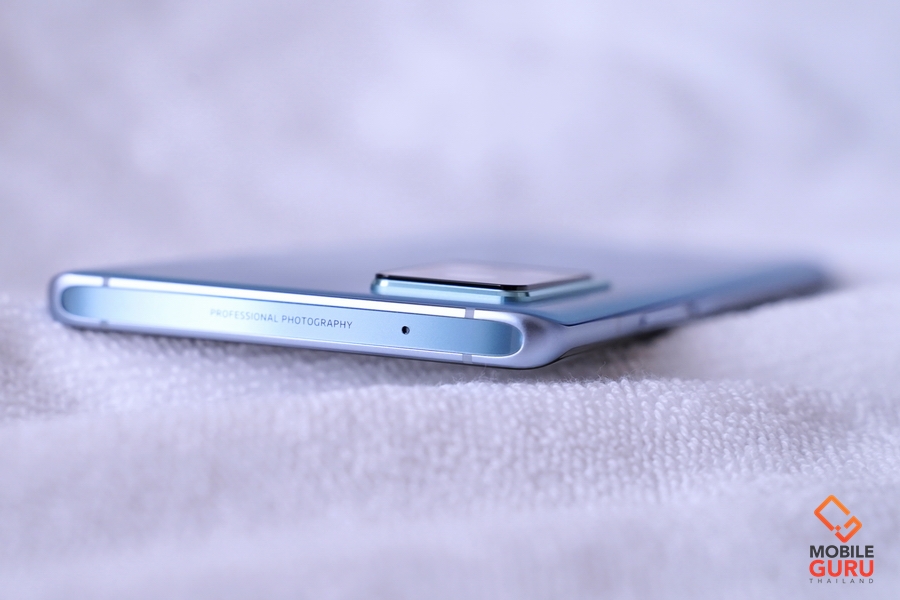 ขอบตัวเครื่องเป็นวัสดุโลหะด้าน ด้านบนออกแบบเป็นแผ่นกระจกพร้อมสโลแกน "Professional Photography" ยิ่งเป็นการตอกย้ำว่ารุ่นนี้เน้นในเรื่องการถ่ายภาพเป็นพิเศษเลยครับ และมีไมค์ตัดเสียงรบกวน สำหรับด้านล่างมีช่องใส่ซิม, ไมโครโฟน, พอร์ท USB Type-C และลำโพง