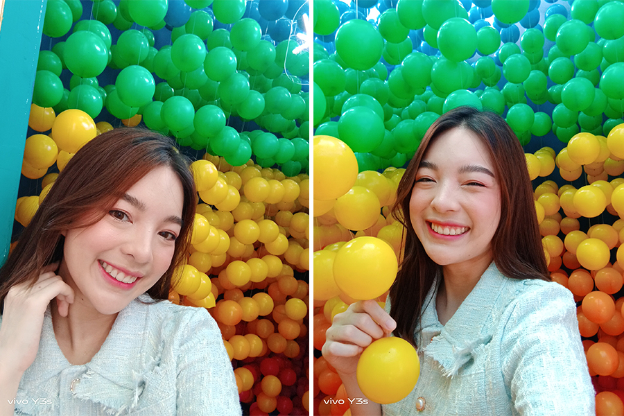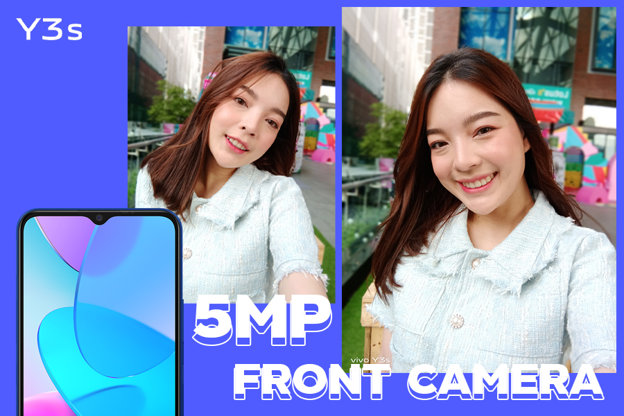 กล้องหน้าของ vivo Y3s มาพร้อมกล้องหน้าตัวเดี่ยวเช่นกันครับ โดยมีความละเอียดอยู่ที่ 5MP (F1.8) มีซอฟต์แวร์โหมดถ่ายภาพมาให้เหมือนกับกล้องหลังทุกอย่างเลย เช่น โหมดบิ้วตี้, โหมดถ่ายภาพ Bokeh ลองไปชมภาพตัวอย่างจากกล้องหน้ากันว่าเป็นอย่างไรบ้าง?