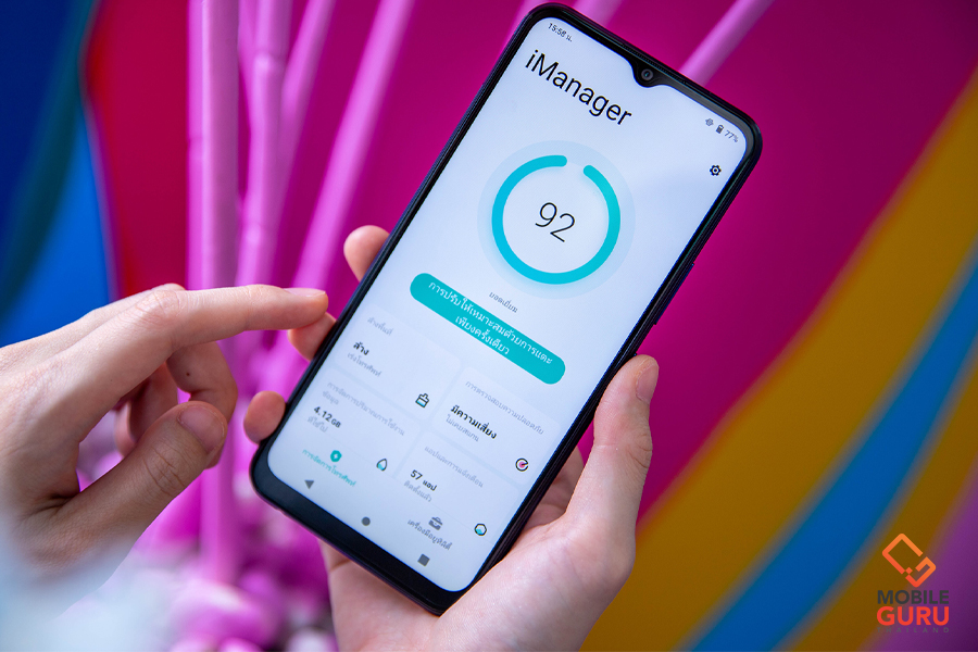 - iManager : ศูนย์กลางการจัดการทรัพยากรบนตัวเครื่อง ซึ่งเป็นสิ่งจำเป็นอยู่ไม่น้อยนะครับสำหรับผู้ใช้งานมือใหม่ เพราะเมื่อเราใช้งานตัวเครื่องไปนาน ๆ ตัว OS ก็จะมีการเก็บค่าไฟล์ต่าง ๆ จากแอปพลิเคชั่นที่เราใช้งานไว้เยอะมาก ๆ ดังนั้นถ้าไม่เคลียออกไปก็อาจส่งผลต่อการทำงานโดยรวมของตัวเครื่องได้ การมีฟีเจอร์นี้เข้ามาก็จะทำให้เราคอยมอนิเตอร์ทรัพยากรบนตัวเครื่องได้ดียิ่งขึ้น รวมทั้งยังกำจัดไฟล์ขยะต่าง ๆ ออกไปได้โดยปลอดภัย ไม่ต้องไปเสี่ยงลบไฟล์เองด้วย
