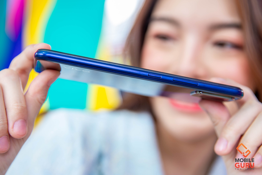 ในด้านงานออกแบบตัวเครื่อง vivo Y3s มาพร้อมการออกแบบสไตล์ "Dazzling Colors" กับการใช้เทคนิคการผลิตด้านสีแบบพิเศษ ดังนั้นฝาหลังตัวเครื่องจะมีความแพรวพราวคล้ายแสงออร่า เหมือนเวลาเรามองแสงแดดรอดผ่านต้นไม้ใหญ่สะท้อนออกมาจากฝาหลัง ดูสวยงามทันสมัยดีครับ และในรีวิวครั้งนี้ผมได้ตัวเครื่องสีน้ำเงิน Starry Blue มา เป็นสีน้ำเงินโทนเข้มที่คุณผู้ชายน่าจะชอบกันแน่นอน โดยทางวีโว่ให้นิยามว่าเหมือนสีน้ำเงินของเนบิวลาในกาแลคซีที่สะท้อนแสง ให้ความรู้สึกเงียบสงบในยามค่ำคืน และสร้างแรงบันดาลใจให้กับจินตนาการและความฝันอันยิ่งใหญ่
