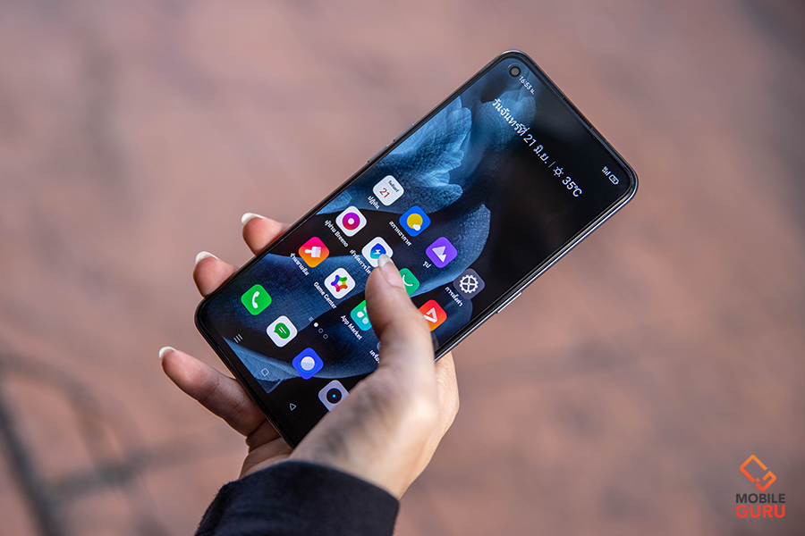 การรับชมวิดีโอและคอนเทนต์ต่าง ๆ realme GT 5G มาพร้อมหน้าจอแสดงผล Super AMOLED ขนาด 6.43 นิ้ว การแสดงผลสีสันสดใส สวยงาม บนขนาดหน้าจอที่พอเหมาะพอดี ไม่ใหญ่และไม่เล็กจนเกินไป ขอบจอค่อนข้างบาง และใช้การวางกล้องหน้าแบบเจาะรู จึงทำให้ไม่รบกวนสายตาในระหว่างการใช้งานมากนัก มุมมองกว้างเต็มตา พร้อมความคมชัดระดับ Full HD+ ทำให้เราสามารถดื่มด่ำกับการดูวิดีโอและรับชมคอนเท้นต์ต่าง ๆ ได้อย่างเต็มอิ่มเลยค่ะ