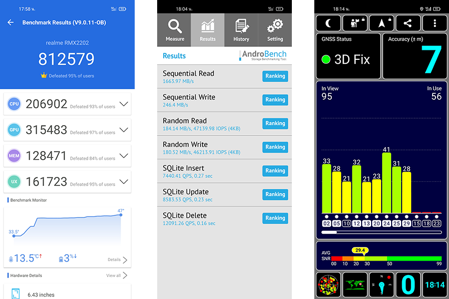 ทดสอบประสิทธิภาพการทำงานด้วยแอปพลิเคชั่น Antutu Benchmark ได้คะแนนรวม 812,579 คะแนน ทดสอบความเร็วในการอ่าน-เขียนของหน่วยความจำด้วยแอปพลิเคชั่น AndroBench ได้ Sequential Read 1,663.97 MB/s | Sequential Write 246.4 MB/s ทดสอบการจับสัญญาณ GPS ภาคพื้นดินด้วยแอปพลิเคชั่น GPS Tester พบว่าจับสัญญาณได้ 56 ดวงจาก 95 ดวง ทดสอบ Multi-touch รองรับการสัมผัสพร้อมกันบนหน้าจอ 10 จุด ทดสอบการรองรับการแสดงผลวีดีโอสตรีมมิ่งที่ความละเอียดระดับสูงด้วย Google WideVine CDM ระดับ L3 กล้องถ่ายรูป (Camera)