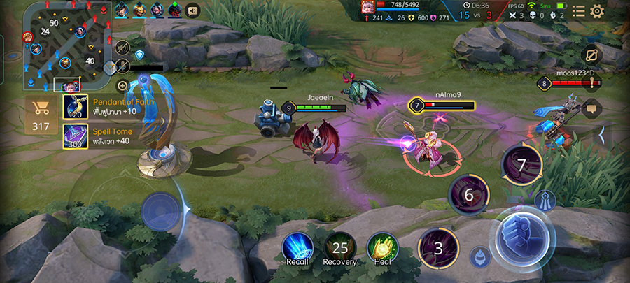 ต่อด้วยเกมที่สองอย่าง RoV ที่สามารถประมวลผลได้ไหลลื่นดีเหมือนกันค่ะ ภาพสวย ทัชติดมือ ตั้งค่าเปิดโหมดเฟรมเรทสูงได้ สามารถปรับค่าโหมด HD และการแสดงผลในระดับสูงมากได้ โดยค่าเฟรมเรทวิ่งนิ่ง ๆ อยู่ที่ 60 FPS และที่ประทับใจเอามาก ๆ คือเมื่อทดลองปรับตั้งค่าการแสดงผลแบบสุดทุกอย่าง และเล่นติดต่อกันยาว ๆ สามตา ตัวเครื่องจะเริ่มอุ่น ๆ เท่านั้น ซึ่งจากที่เคยทดลองผ่านมือมาส่วนใหญ่เครื่องจะร้อนเร็วกว่านี้มาก ถือว่าตัวระบายความร้อนแบบใหม่ที่ใส่มาให้ได้ผลดีเกินคาดเลยเหมือนกัน
