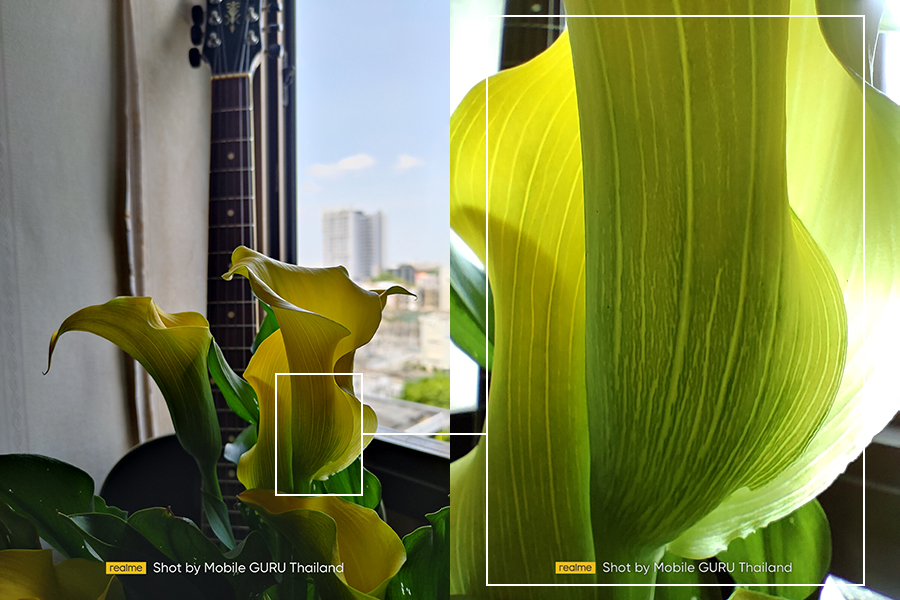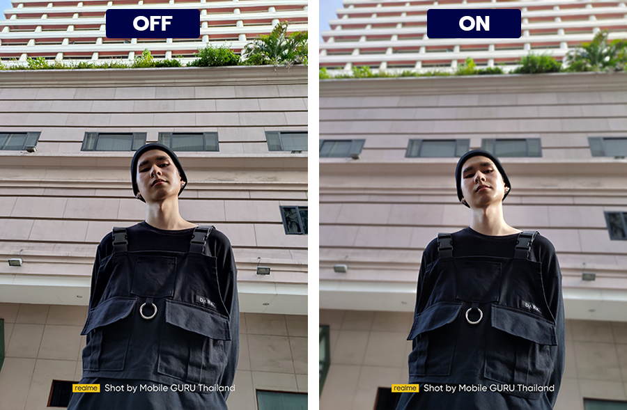 กล้องหลัง สมาร์ตโฟน realme GT 5G มาพร้อมกล้องหลัง Sony 64MP Triple Camera ประกอบด้วย เลนส์หลัก Sony IMX682 ความละเอียด 64 ล้านพิกเซล ค่ารูรับแสงกว้าง f/1.8, เลนส์ Ultra Wide-angle มุมกว้าง 119 องศา ความละเอียด 8 ล้านพิกเซล ค่ารูรับแสงกว้าง f/2.3 และเลนส์ Macro ความละเอียด 2 ล้านพิกเซล ระยะโฟกัสใกล้สุด 4 เซนติเมตร ค่ารูรับแสงกว้าง f/2.4 มาพร้อมกับไฟแฟลช LED ในตัว รองรับซูมดิจิตอลสูงสุด 10X รองรับการบันทึกวิดีโอความละเอียดสูงสุด 4K และมีกันสั่น UIS Max พร้อมด้วยโหมดถ่ายภาพ 64MP Mode, Super Night Mode, Panoramic View, Expert, Timelapse, Bokeh, HDR, Ultra Wide-angle, Ultra Macro, AI Scene Recognition, AI Beauty, Filter, Dazzle Color Mode, Hypertext, AI ID photo, Portrait Distortion Correction ซึ่งแม้ว่าจะไม่ได้ชูมาเป็นจุดขายหลักของรุ่นนี้ แต่ผลลัพธ์ที่ออกมาก็ถือว่าอยู่ในเกณฑ์ระดับดี และมีฟีเจอร์ให้เลือกสนุกไปกับการกดชัตเตอร์หลากหลายแบบค่ะ