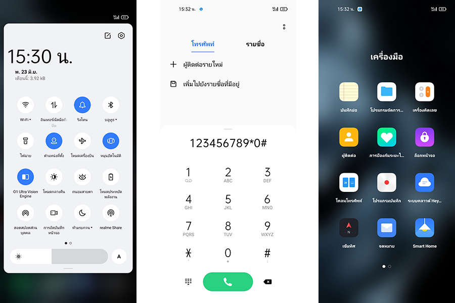 สำหรับฟีเจอร์และลูกเล่นต่าง ๆ ใน realme UI 2.0 บนสมาร์ตโฟน realme GT 5G เครื่องนี้ อย่างที่เกริ่นไปก่อนหน้านี้ว่าเป็นเครื่องสเปกจีน แม้จะรองรับภาษาไทย แต่ในบางฟีเจอร์ก็ยังคงมีภาษาจีนอยู่ค่ะ Play Store และบริการต่าง ๆ ของ Google ยังไม่มีมาให้ เชื่อว่าในเวอร์ชันที่วางจำหน่ายในไทย จะถูกปรับใหม่ทั้งหมด ซึ่งในบทความนี้เราก็ได้ทำการติดตั้ง APK เพื่อดาวน์โหลดแอปพลิเคชันที่จำเป็นสำหรับทดสอบประสิทธิภาพการใช้งานเพิ่มเติมด้วยค่ะ