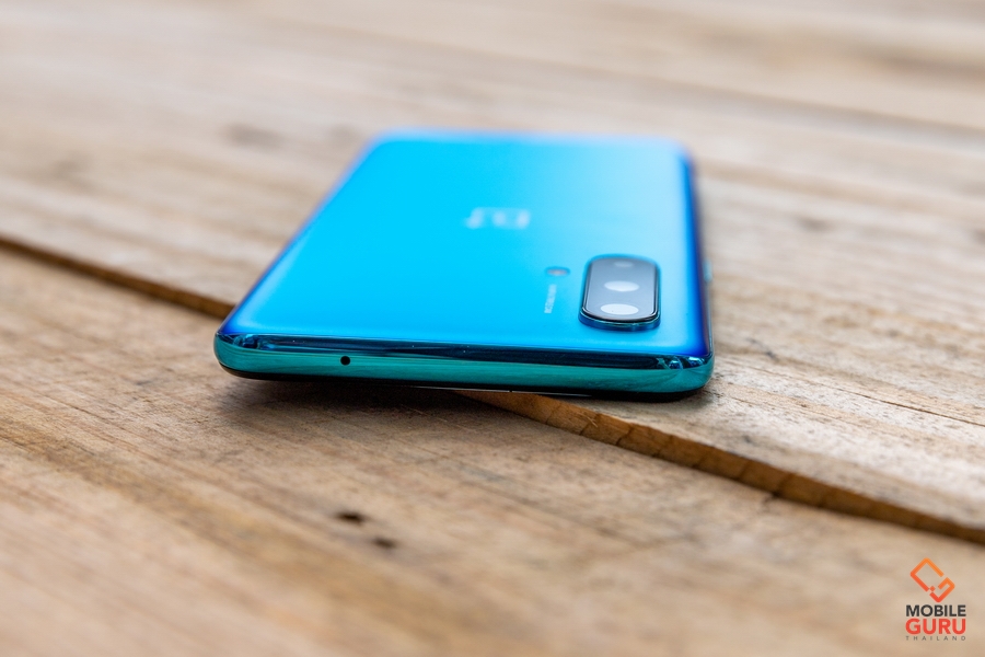 ด้านหลังมีกล้อง 3 เลนส์ ความละเอียด 64MP F1.79, 26 มม. (wide), PDAF + 8MP F2.25, 119 องศา (ultrawide) + 2MP F2.4, (depth) ค่อนข้างนูนขึ้นมาต้องระวังกันซักหน่อย ข้างๆจะมีไฟแฟลช LED และข้อความว่า 64MP AI Triple Camera และตรงกลางจะเป็นโลโก้วันพลัส