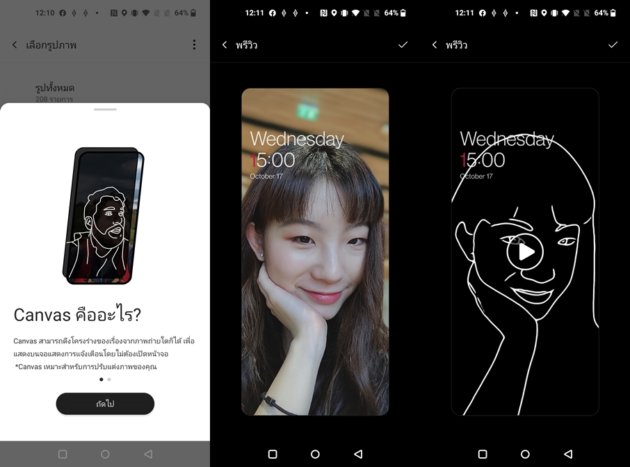 รองรับการปรับแต่งรายละเอียดของหน้าตาการใช้งาน ปรับแต่งโทนสีและรูปแบบไอค่อนได้ด้วยนะครับ รองรับ Always On Display (มีให้เลือกเยอะไม่เบาเลยครับ) และลูกเล่นที่ดูน่ารักอย่าง Canvas สามารถสร้างภาพลายเส้นได้จากรูปถ่าย เพื่อนำไปใช้เป็นภาพแสดงการแจ้งเตือนบนหน้าจอ