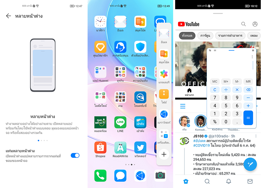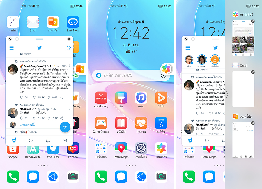 อีกฟีเจอร์ที่ทำได้ดีคือ การทำงานแบบหลายหน้าต่าง (Multi-Window) โดยสามารถใช้งานได้ทั้งมุมมองแบบแบ่งหน้าจอหรือจะใช้ร่วมกับหน้าต่างลอยก็ได้ ซึ่งจากที่ลองใช้งานดูถือว่าทำได้เสถียรพอสมควรเลยค่ะ สามารถสลับใช้งานแอปฯต่าง ๆ ได้ไม่มีสะดุด ไม่ว่าจะชมคอนเทนต์ ไถโซเชียล หรือตอบแชท ก็เลือกทำไปพร้อม ๆ กันได้เลย