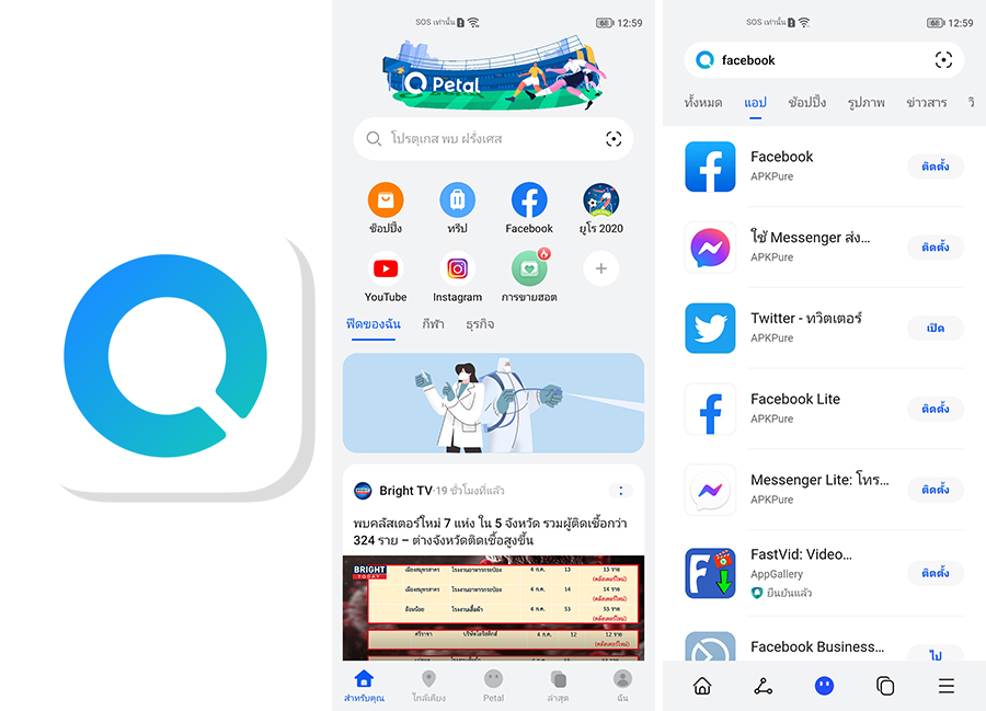 ขอพูดถึง Petal Search อีกสักหน่อยค่ะ เพราะส่วนตัวมองว่าเป็นส่วนที่ออกแบบมาได้รองรับปัญหาของผู้ใช้งานได้ตรงจุดมาก ๆ โดย Petal Search เป็นแอปพลิเคชันสำหรับการค้นหา ที่นอกจากความสามารถในการค้นหาทั่วไปแล้ว ความดีงามที่ต้องยกนิ้วให้คือ มันสามารถค้นหาแอปพลิเคชันต่าง ๆ ไม่ว่าจะมีรองรับอยู่ใน HUAWEI AppGallery หรือจากแหล่งดาวน์โหลดอื่น ๆ ให้ผู้ใช้งานสามารถเสิร์ชหาแอปพลิเคชันที่ต้องการจะดาวน์โหลดมาติดตั้งได้อย่างง่ายดายโดยไม่ต้องเสียเวลาเข้าเบราว์เซอร์แล้วค้นหาแหล่งด้วยตนเอง เรียกว่าปิดจุดอ่อนเรื่องการดาวน์โหลดแอปฯได้ดีเลยทีเดียว