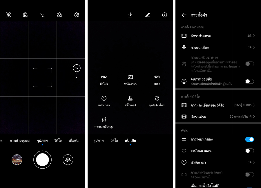 หน้าเมนูกล้องถ่ายรูป