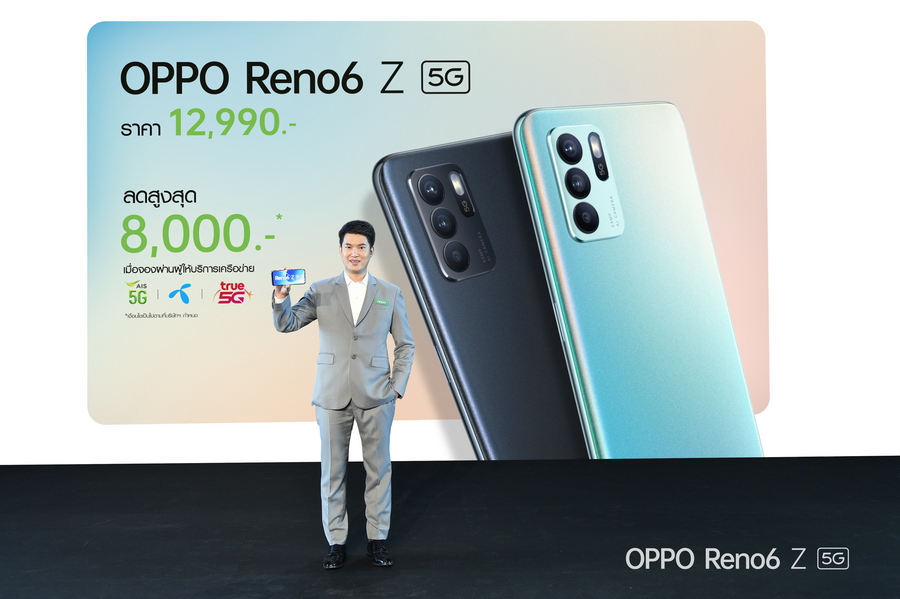 จอง OPPO Reno6 Z 5G ผ่านผู้ให้บริการเครือข่าย AIS, dtac และ TrueMove H รับส่วนลดสุงสุด 8,000 บาท เมื่อจองเครื่องพร้อมแพ็กเกจรายเดือน