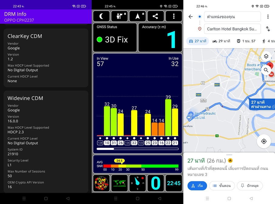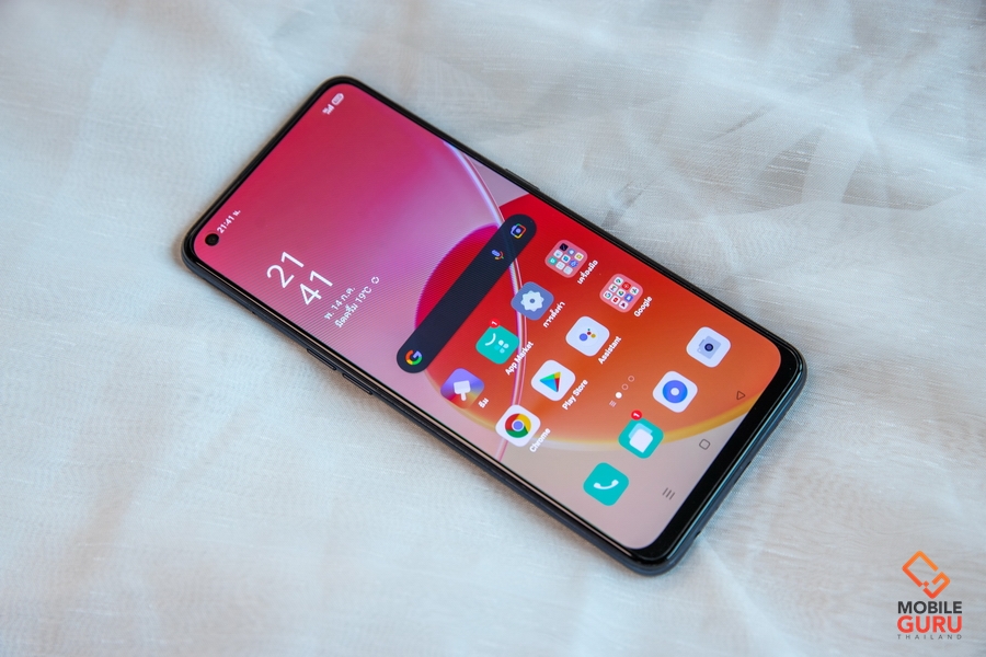GSM 850 / 900 / 1800 / 1900 HSDPA 850 / 900 / 2100 LTE band 1, 2, 3, 4, 5, 7, 8, 18, 19, 20, 26, 28, 66 5G band 1, 3, 5, 7, 8, 28, 38, 40, 41, 77, 78 Wi-Fi 802.11 a/b/g/n/ac, dual-band, Wi-Fi Direct, hotspot Bluetooth 5..1, A2DP, LE, aptX HD GPS, A-GPS, GLONASS, GALILEO, BDS พอร์ทหูฟัง 3.5 มม. USB Type-C 2.0, USB On-The-Go หน้าจอ Punch-Hole AMOLED Screen ขนาด 6.43 นิ้ว ความละเอียด FHD+ 1080 x 2400 pixels (409 ppi) อัตราส่วนหน้าจอ 20:9 รองรับ SGS Eye Care Display มีให้เลือก 2 สี ได้แก่ Stellar Black และ Aurora ทำงานบน Android 11 ครอบทับด้วย ColorOS 11.1 ชิปเซ็ต MediaTek Dimensity 800U 5G CPU Octa-core (2x2.4 GHz Cortex-A76 & 6x2.0 GHz Cortex-A55) GPU Mali-G57 MC3 RAM 8GB (LPDDR4X) ROM 128GB (UFS2.1) รองรับ microSDXC เซ็นเซอร์ AI Face Access, Fingerprint (under display, optical), accelerometer, gyro, proximity, compass แบตเตอรี่ความจุ 4,310 mAh รองรับชาร์จเร็ว 30W VOOC Flash Charge 4.0 (สามารถชาร์จแบตเตอรี่ 100% ได้ในเวลาเพียงแค่ 49 นาที) กล้องหน้ารูปแบบ Punch-Hole AMOLED Screen ความละเอียด 32MP กล้องหลัง 3 เลนส์ ความละเอียด 64MP Main Camera: f/1.7 + 8MP Ultra Wide-angle Camera: f/2.2 + 2MP Macro Camera: f/2.4 บันทึกวีดีโอ 4K 30FPS, 1080P 30FPS, ระบบกันสั่น Gyro-EIS (กล้องหน้ารองรับสูงสุด 1080P 30FPS) ราคาเปิดตัว 12,990 บาท ทดสอบด้วยแอปพลิเคชัน AnTuTu Benchmark ทำไปได้ 374,578 คะแนน ทดสอบ MultiTouch รองรับ 10 จุด ทดสอบด้วยแอปพลิเคชัน AndroBench ทำความเร็ว Storage ในการอ่านอยู่ที่ 982.78.25 MB/s และการเขียน 482.12 MB/s (UFS2.1) รองรับ DRM L1 รองรับ Netflix & Amazon HD Streaming ทดสอบสัญญาณ GPS จับสัญญาณได้รวดเร็ว OPPO Reno6 Z 5G รองรับคลื่น 5G มาตรฐานใหม่ในตอนนี้ ผมทดสอบแถวชานเมือง ช่วงพระราม 2 ผลออกมาน่าพอใจมากทีเดียว มีสัญญาณครอบคลุมดีมากครับ ในตอนนี้กรุงเทพฯ แทบจะ 100% รวมไปถึงชานเมืองและจังหวัดใกล้เคียง หรือหัวเมืองใหญ่ๆ ของประเทศไทยรองรับ 5G เรียบร้อยแล้วนะครับ